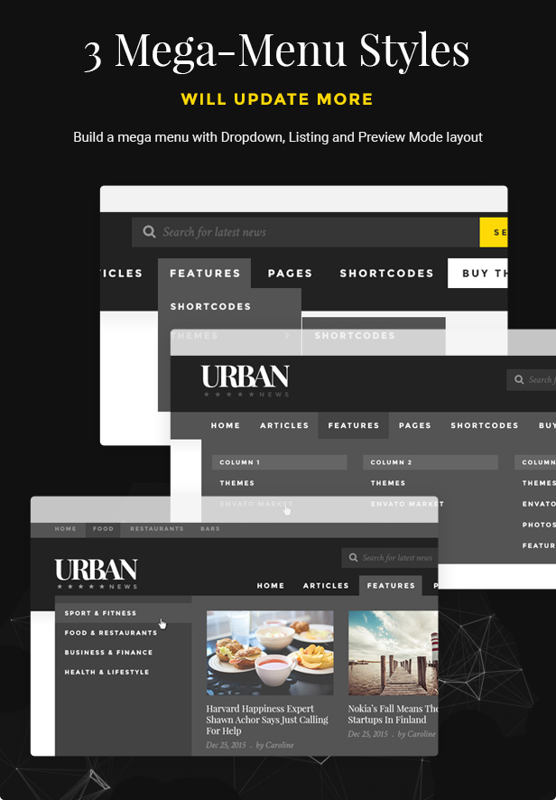 - Mega Menu: With 3 styles