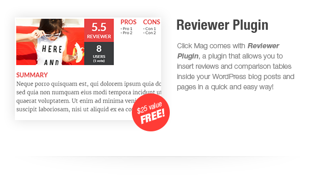 Click Mag is the only magazine/blog theme you need to maximize clicks and keeep visitors flooding back to your site. From its various social sharing options, trending posts, maximum ad exposure, SEO optimization, and attractive design, Click Mag will deliver the best user experience and clicks of any WordPress theme you’ve ever used!