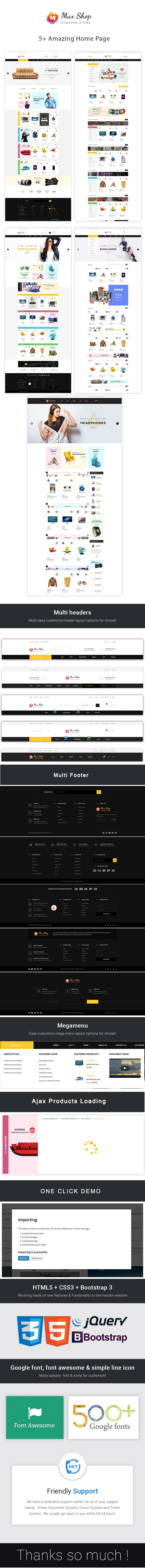 Maxshop is wordpress ecommerce theme based on WooCommerce plugin. It is suitable for electronics, cosmetics, fashion, accessories, mega store and multipurpose online stores or similar websites that needs a feature rich and beautiful presence online with elegant and flexible design. Beside a large number of features, this theme is a perfect template for leaving a positive impression to your customers. Maxshop theme support you many great tools to enable the features via using Theme Editor, you also can customize Google fonts without code very easy and simple. Finally, every single element of in Maxshop is entirely responsive, as content can be viewed from desktop and mobile devices.